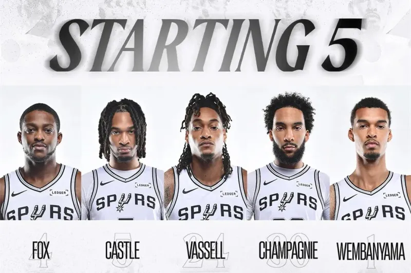 ——福克斯、文班亚马、卡斯尔、尚帕尼、瓦塞尔同时在场时,马刺百回合可以净胜对手21.3分,这,绝对是争冠阵容的水平