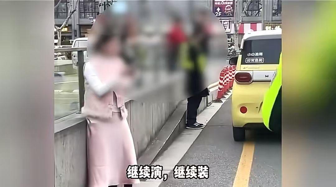 大哥依旧没有接招,现在情况已经很明显了,女子应该知道车辆剐蹭是自己的原因,于是就想从别的地方找回来,比如制造一场矛盾让自己处于弱势群体。