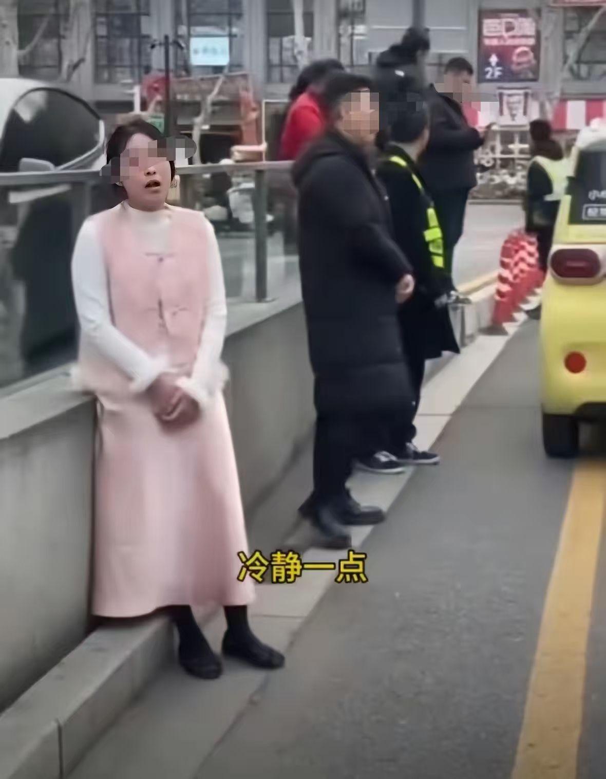 一开始还有人在女子和大哥之间挡着,后来发现女子这样的脾性后,直接不管了,大哥的妻子担心丈夫做出什么出格的举动,也上去拦在丈夫和女子之间。